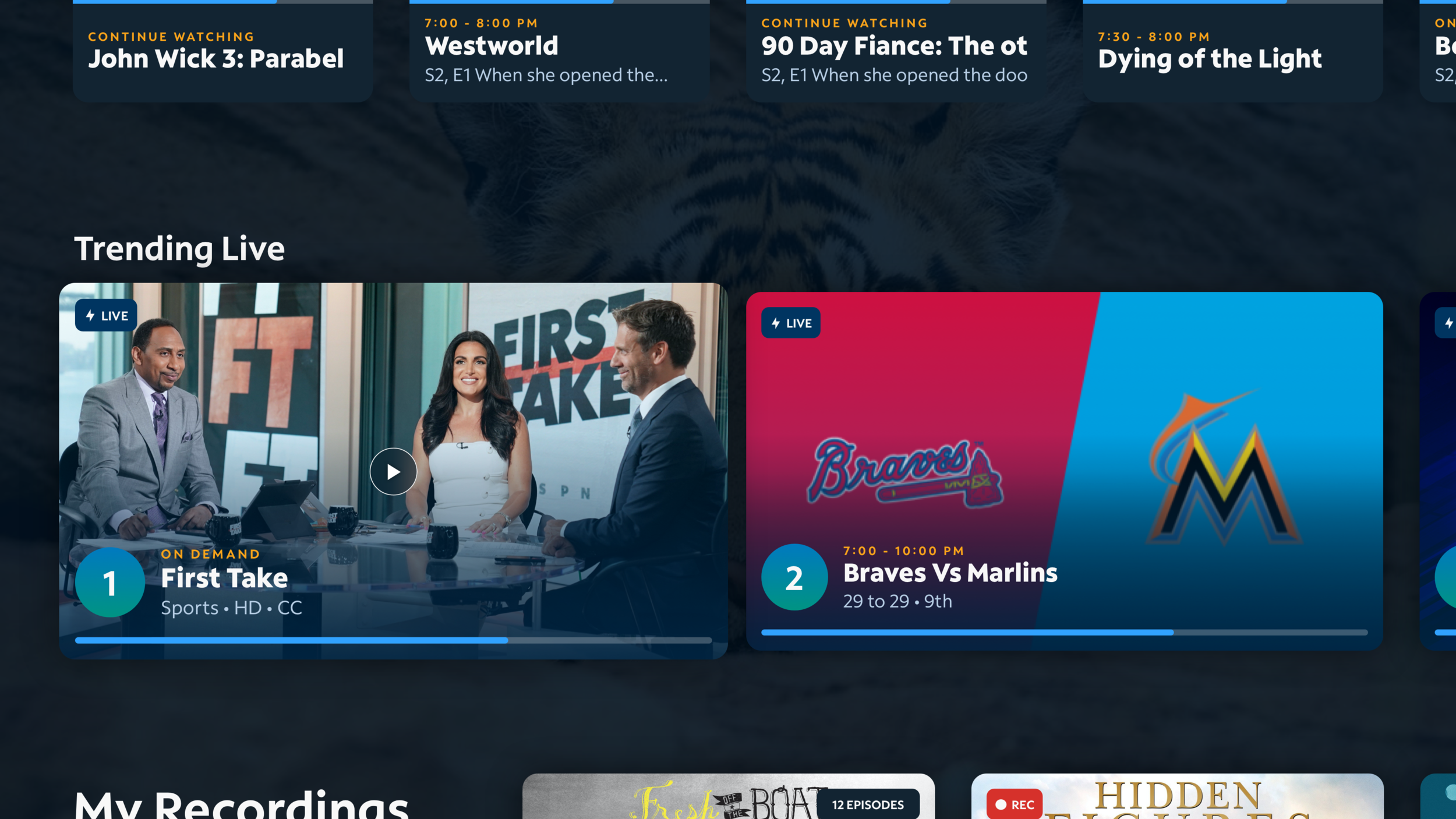 I created the UI design for Spectrum TV’s Google TV app. This design was then implemented by other designers on platforms like Roku and Samsung TV. This uses the new “Kite Next TV UI Kit” that I also designed.